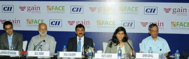 (L to R) : Dr.Rajan Sankar, Country Manager India and Senior Advisor, South Asia, GAIN Dr.Meenakshi Singh, Scientist (Standards), FSSAI Mr.SirajChaudhury, Chairman, Cargill India Ltd. Ms.Meetu Kapur, Executive Director, Confederation of Indian Industry Dr.Jee Rah, Nutritionist, UNICEF